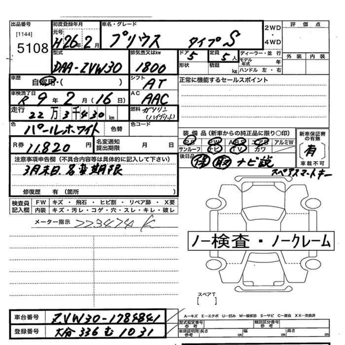 Статус выставлен на аукцион Лот 5108 Аукцион JU Oita Дата аукциона 11.03.2026