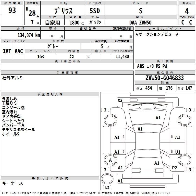 TOYOTA PRIUS 2016 г., лот № 93