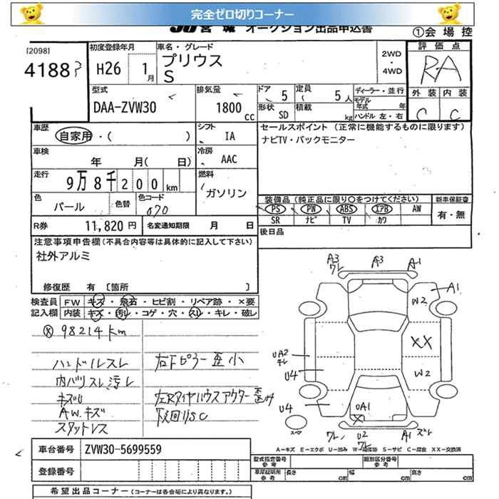Стартовая цена авто на аукционе 0 ¥