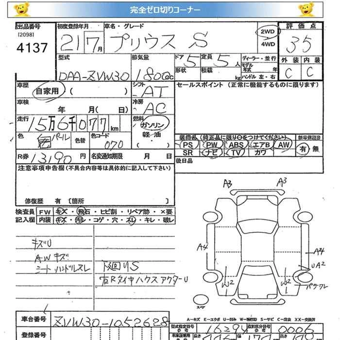 Стартовая цена авто на аукционе 0 ¥