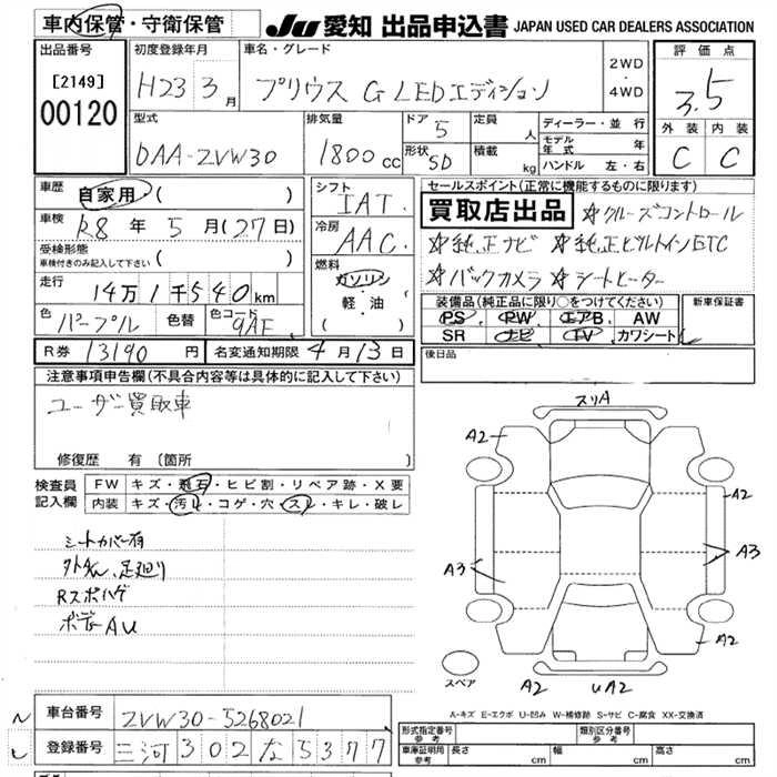 Статус выставлен на аукцион Лот 120 Аукцион JU Aichi Дата аукциона 12.03.2026