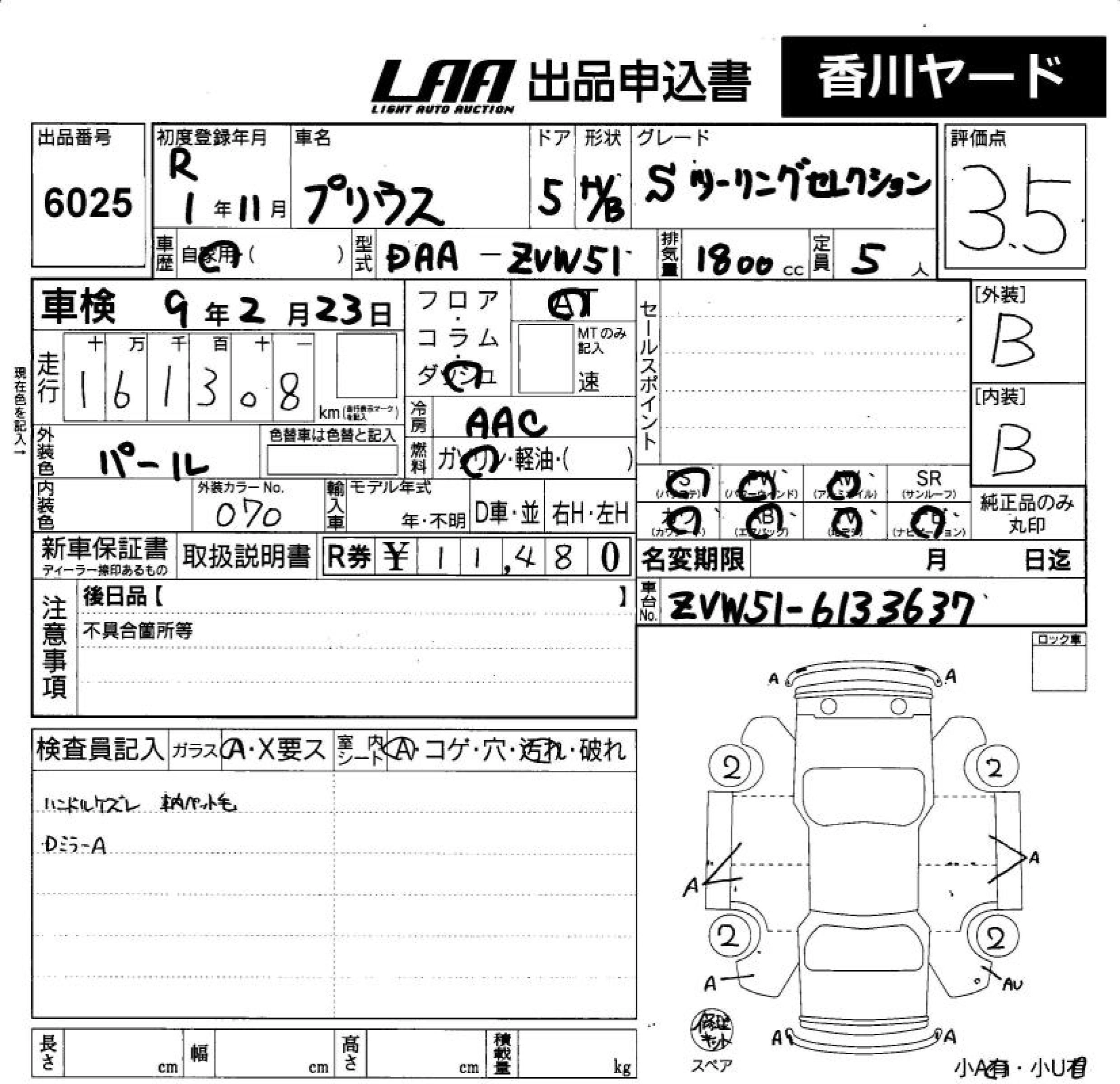 Статус выставлен на аукцион Лот 6025 Аукцион LAA Shikoku Дата аукциона 11.03.2026