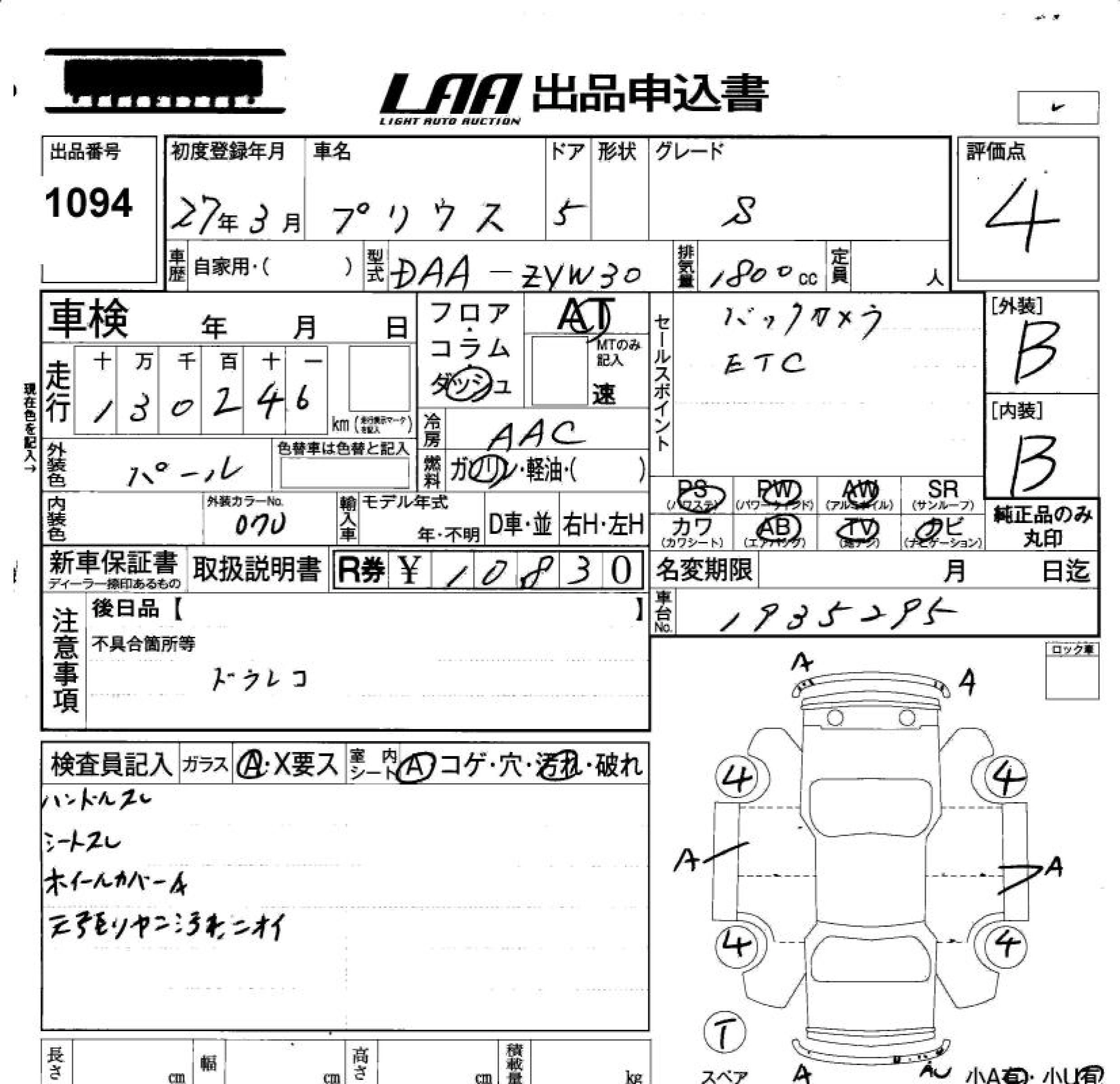 Год выпуска2015 Пробег 130 000 км КузовZVW30 КомплектацияS