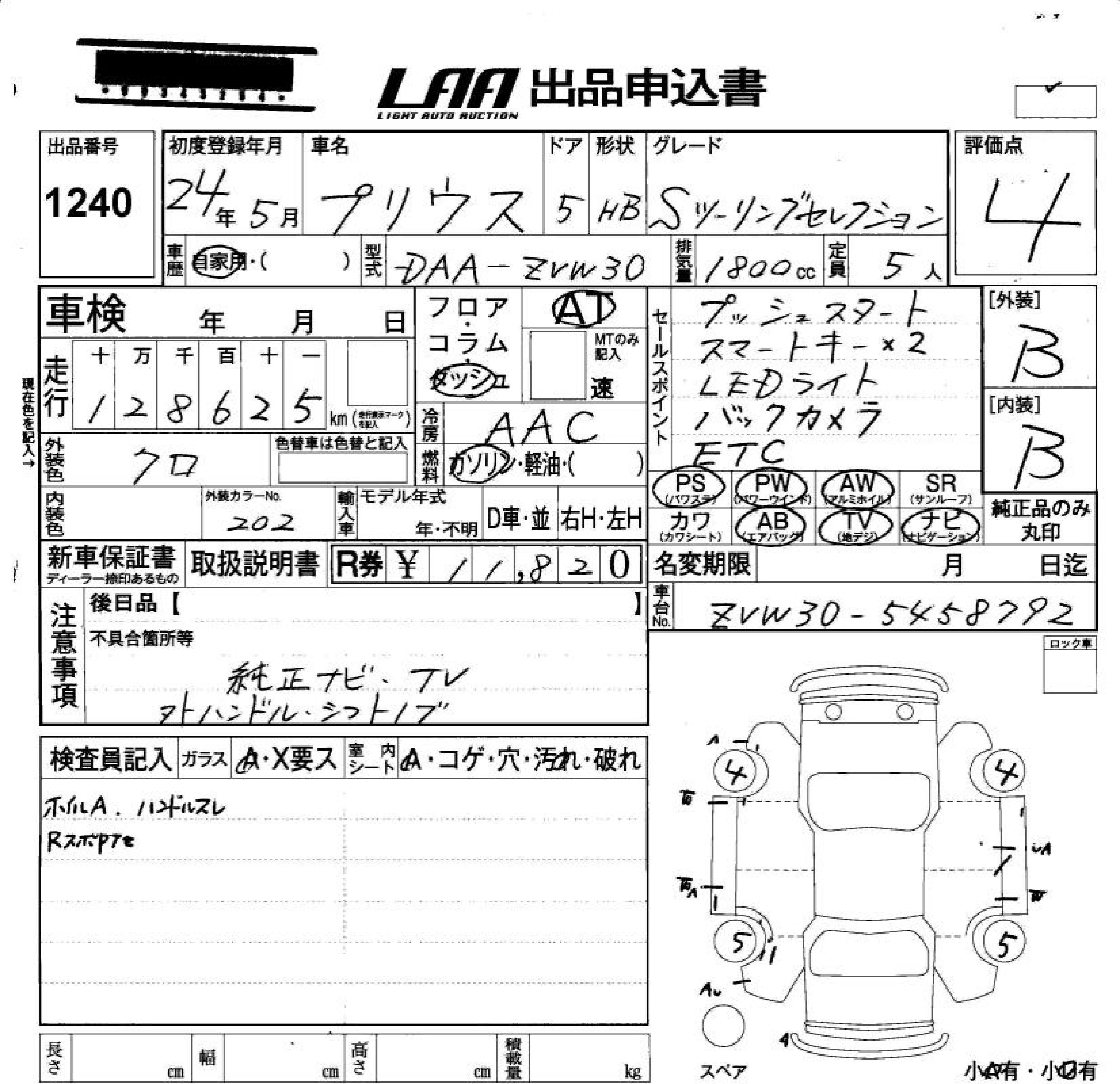 TOYOTA PRIUS 2012 г., лот № 1240