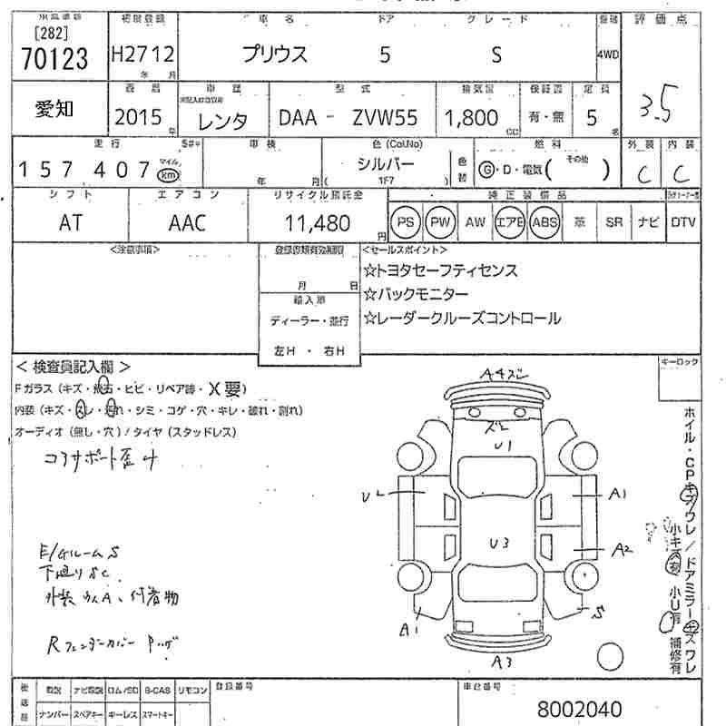 TOYOTA PRIUS 2015 г., лот № 70123