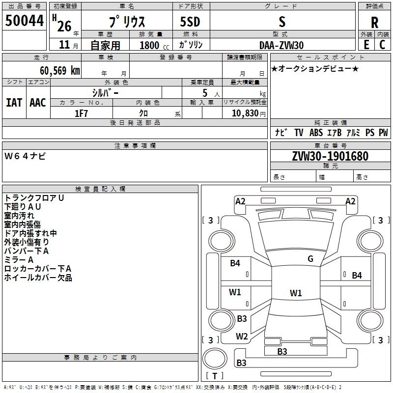 TOYOTA PRIUS 2014 г., лот № 50044