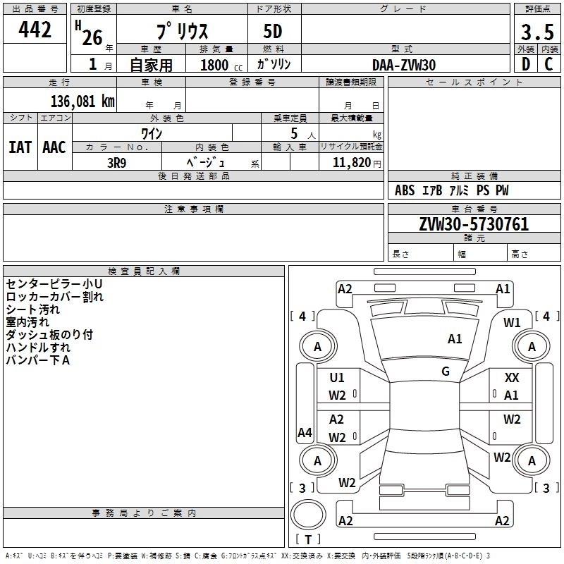 Статус выставлен на аукцион Лот 442 Аукцион TAA Chubu Дата аукциона 12.03.2026