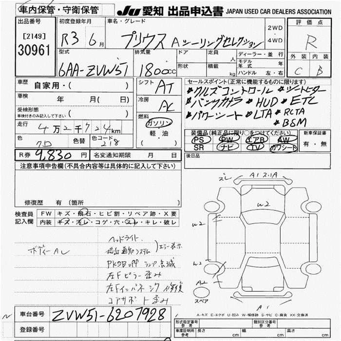 Статус выставлен на аукцион Лот 30961 Аукцион JU Aichi Дата аукциона 12.03.2026