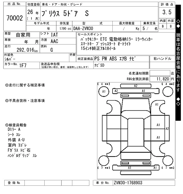 TOYOTA PRIUS 2014 г., лот № 70002