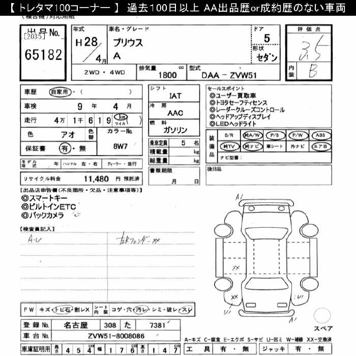 TOYOTA PRIUS 2016 г., лот № 65182