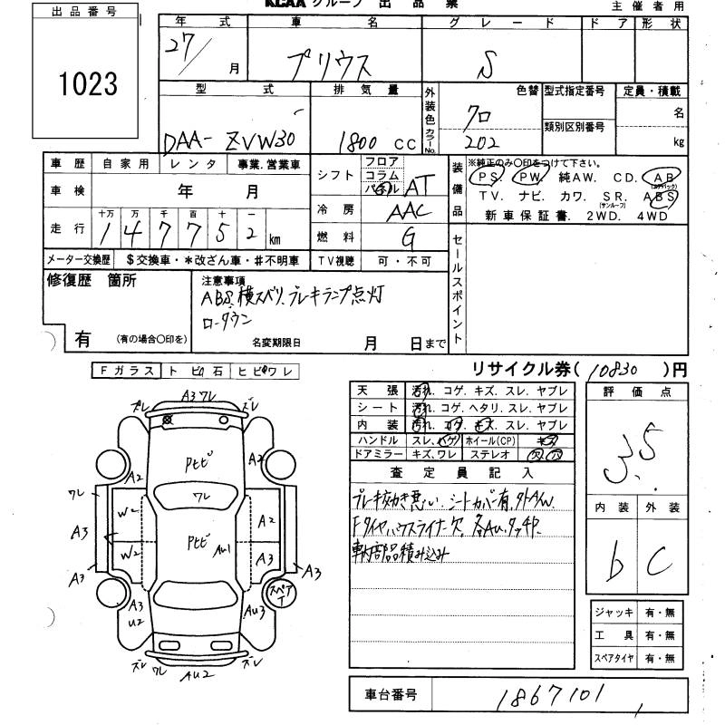 TOYOTA PRIUS 2015 г., лот № 1023