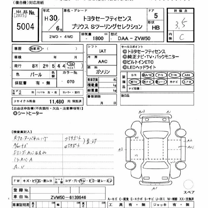 TOYOTA PRIUS 2018 г., лот № 5004