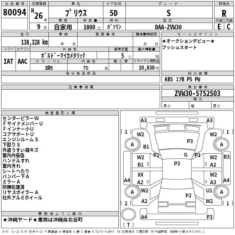 TOYOTA PRIUS 2014 г., лот № 80094