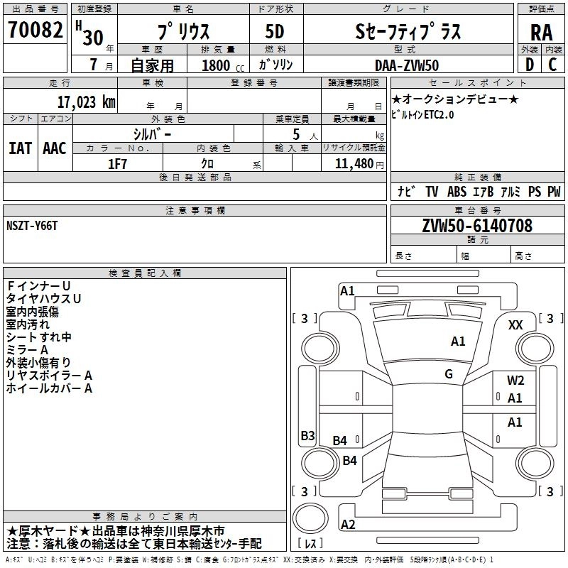 TOYOTA PRIUS 2018 г., лот № 70082