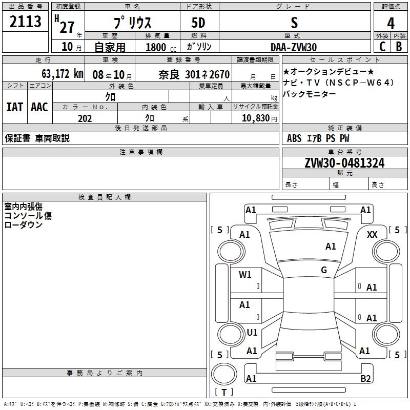 TOYOTA PRIUS 2015 г., лот № 2113