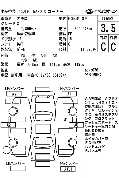 TOYOTA PRIUS 2013 г., лот № 10019