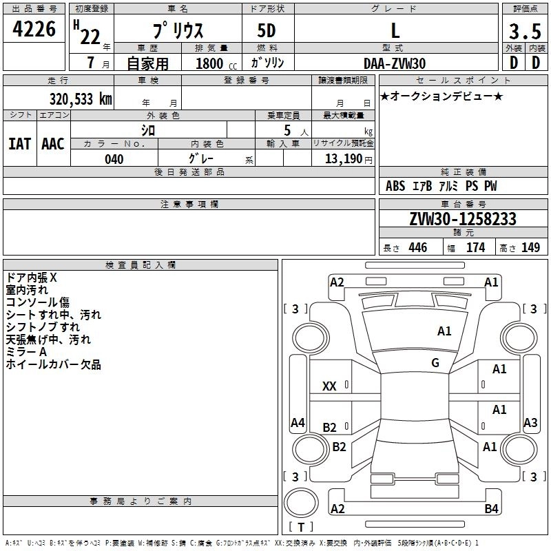 Статус выставлен на аукцион Лот 4226 Аукцион TAA Shikoku Дата аукциона 17.03.2026