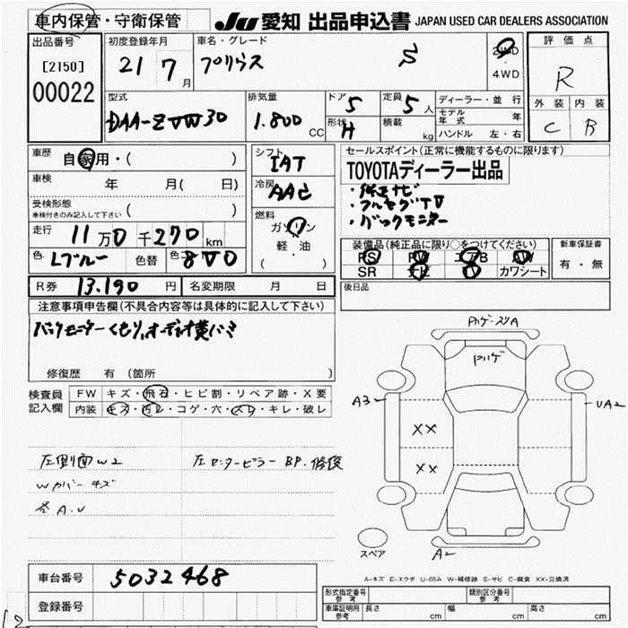Статус выставлен на аукцион Лот 22 Аукцион JU Aichi Дата аукциона 19.03.2026