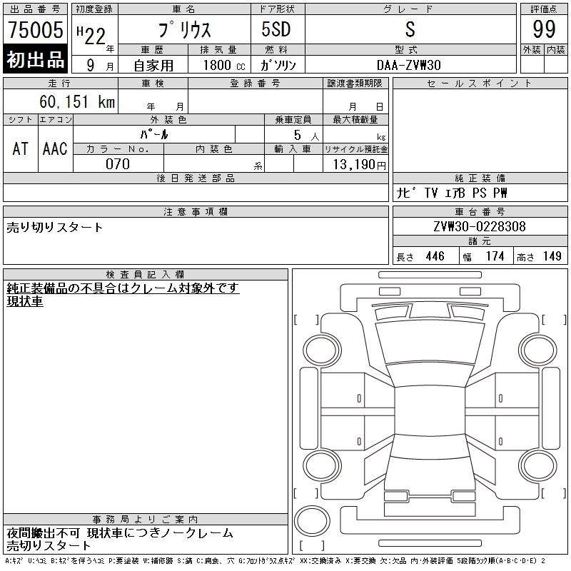 Статус выставлен на аукцион Лот 75005 Аукцион CAA Chubu Дата аукциона 18.03.2026