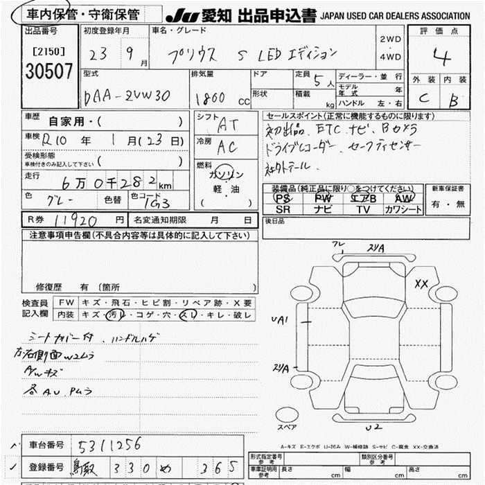 Статус выставлен на аукцион Лот 30507 Аукцион JU Aichi Дата аукциона 19.03.2026