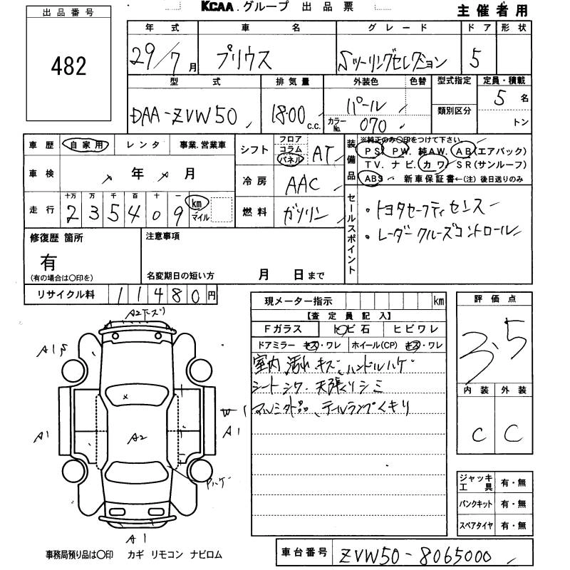TOYOTA PRIUS 2017 г., лот № 482