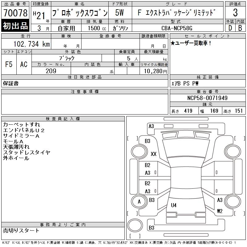 Год выпуска2009 Пробег 103 000 км КузовNCP58G КомплектацияF EXTRA PACKAGE LIMITED