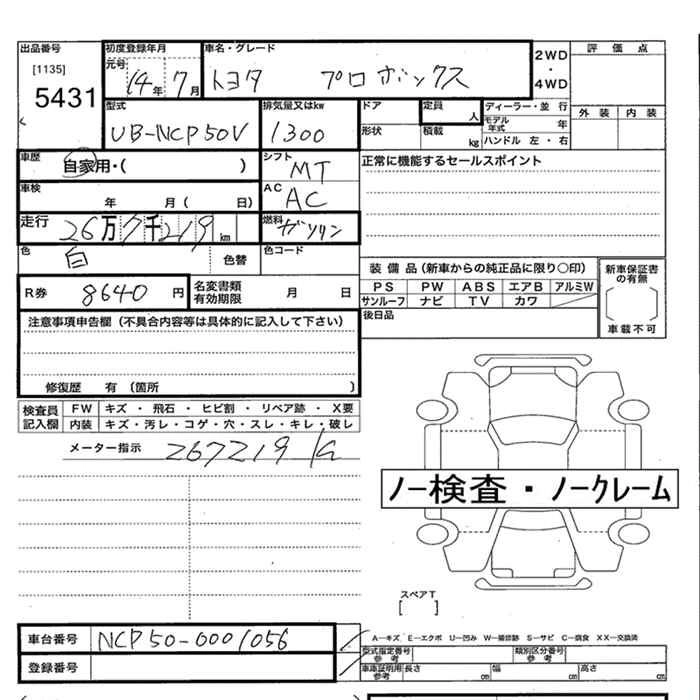 TOYOTA PROBOX 2002 г., лот № 5431