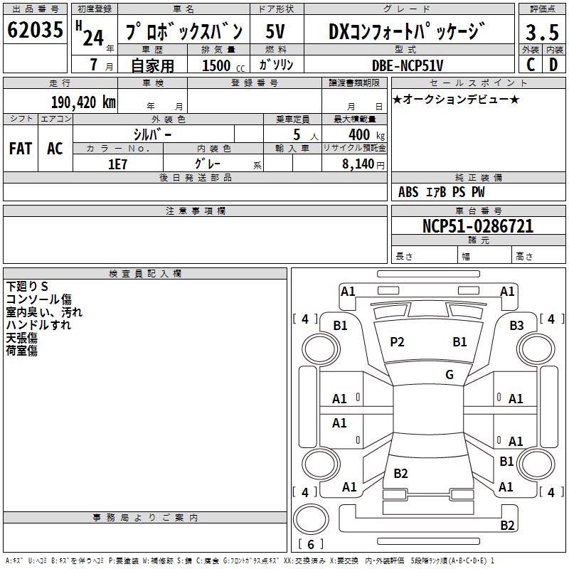 TOYOTA PROBOX 2012 г., лот № 62035