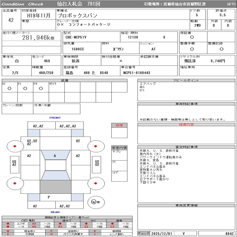 Статус выставлен на аукцион Лот 42 Аукцион ORIX Sendai Дата аукциона 09.12.2025