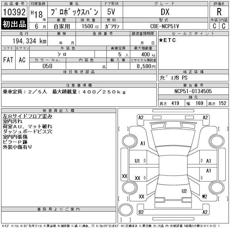 Год выпуска2006 Пробег 194 000 км КузовNCP51V КомплектацияDX