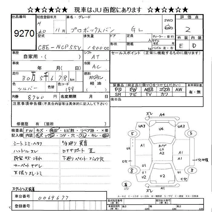 TOYOTA PROBOX 2008 г., лот № 9270