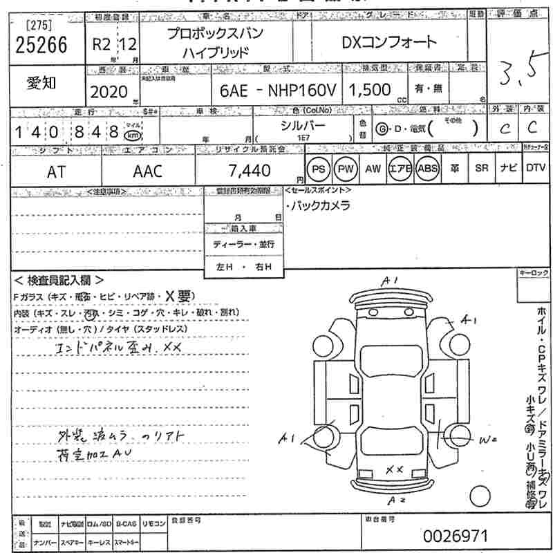 Статус продан Лот 25266 Аукцион MIRIVE Aichi Дата аукциона 23.01.2026