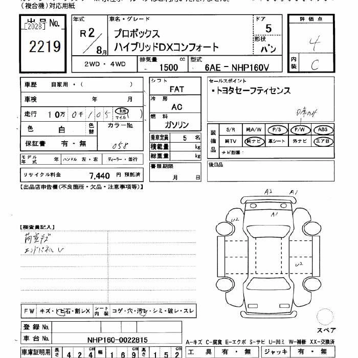 TOYOTA PROBOX 2020 г., лот № 2219