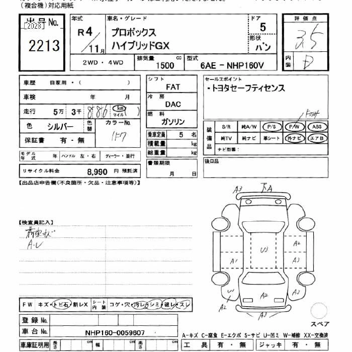 TOYOTA PROBOX 2022 г., лот № 2213