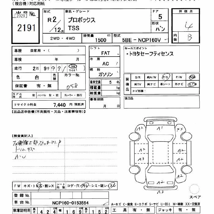 TOYOTA PROBOX 2020 г., лот № 2191