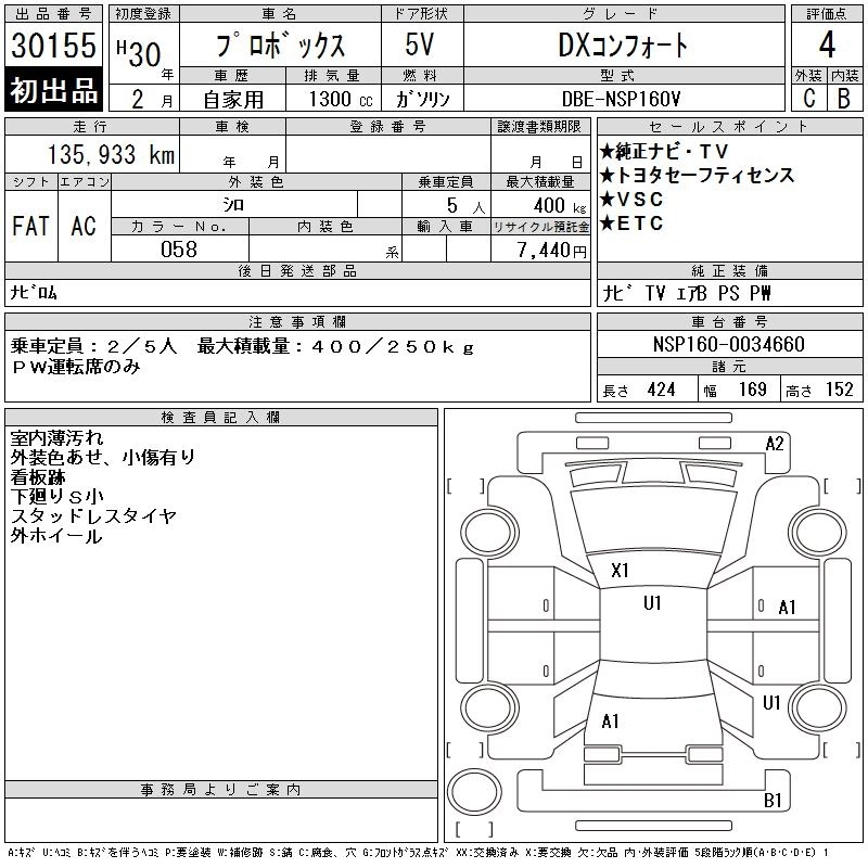 TOYOTA PROBOX 2018 г., лот № 30155