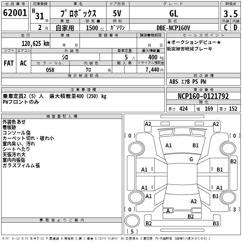 TOYOTA PROBOX 2019 г., лот № 62001