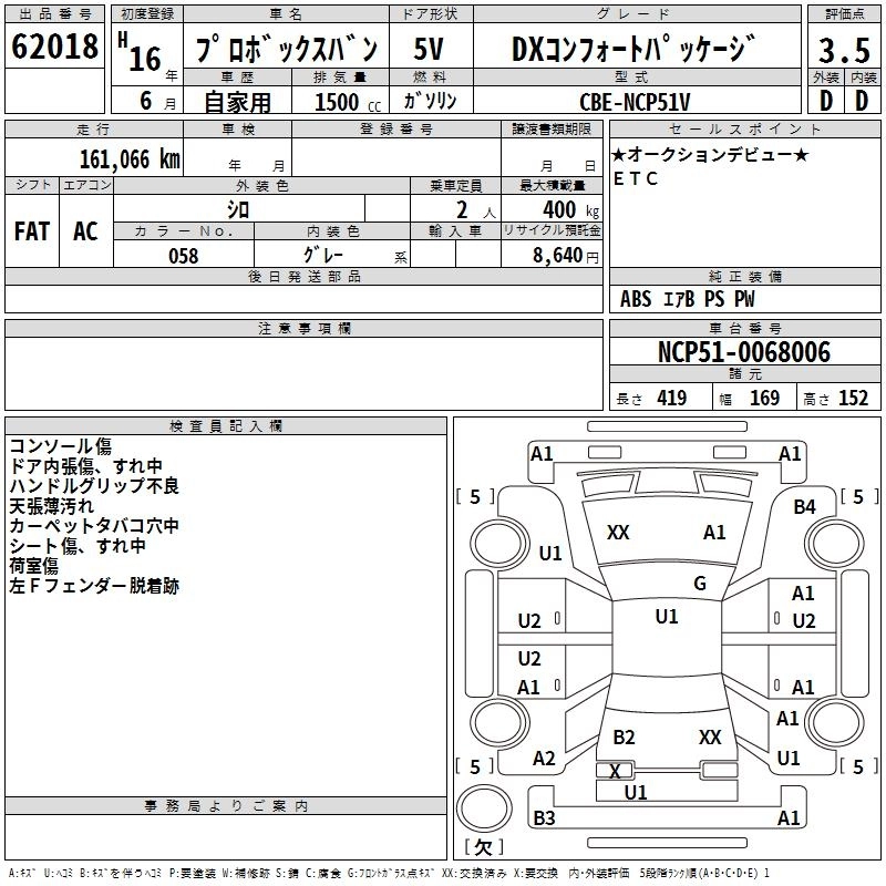 TOYOTA PROBOX 2004 г., лот № 62018