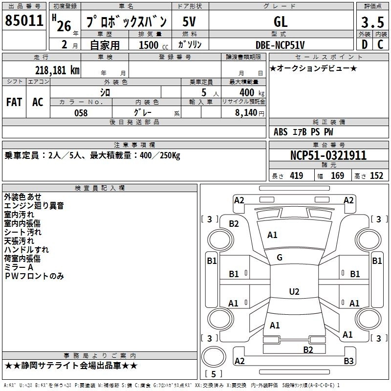 TOYOTA PROBOX 2014 г., лот № 85011