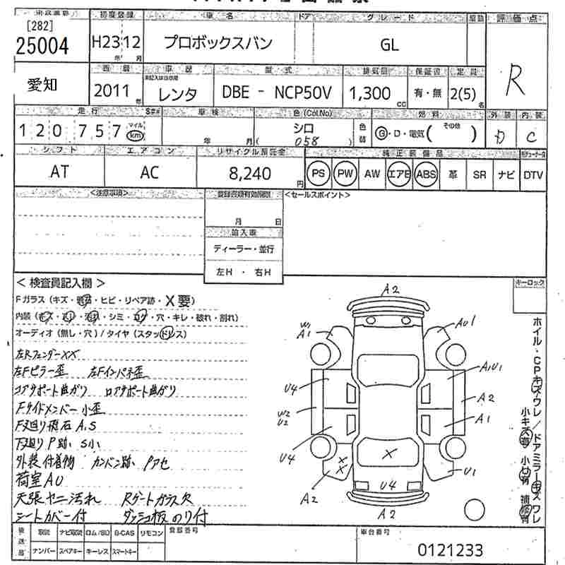 TOYOTA PROBOX 2011 г., лот № 25004