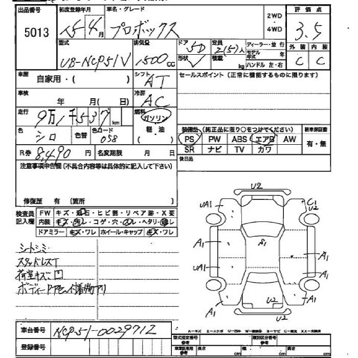 TOYOTA PROBOX 2003 г., лот № 5013