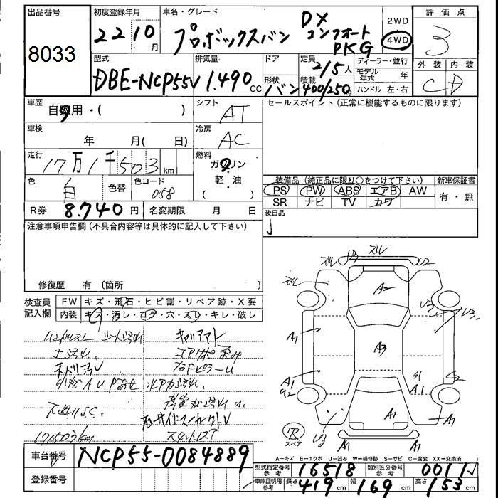 TOYOTA PROBOX 2010 г., лот № 8033