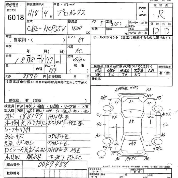 TOYOTA PROBOX 2006 г., лот № 6018