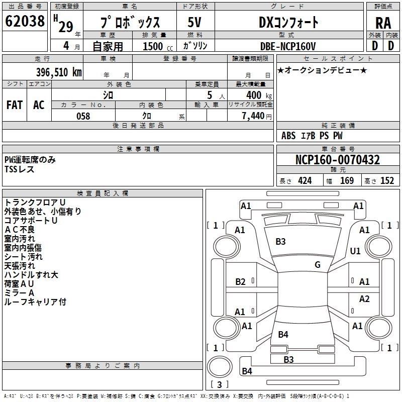 TOYOTA PROBOX 2017 г., лот № 62038