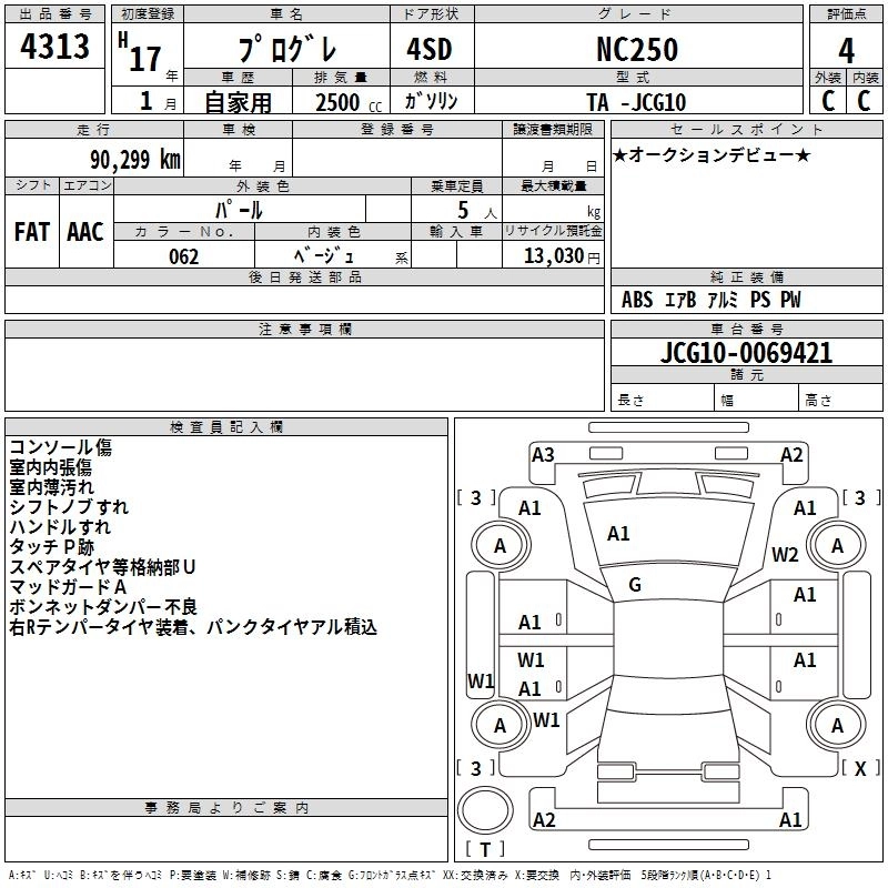 TOYOTA PROGRES 2005 г., лот № 4313