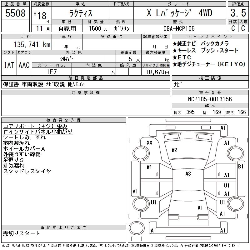 Год выпуска2006 Пробег 136 000 км КузовNCP105 КомплектацияX L PACKAGE 4WD