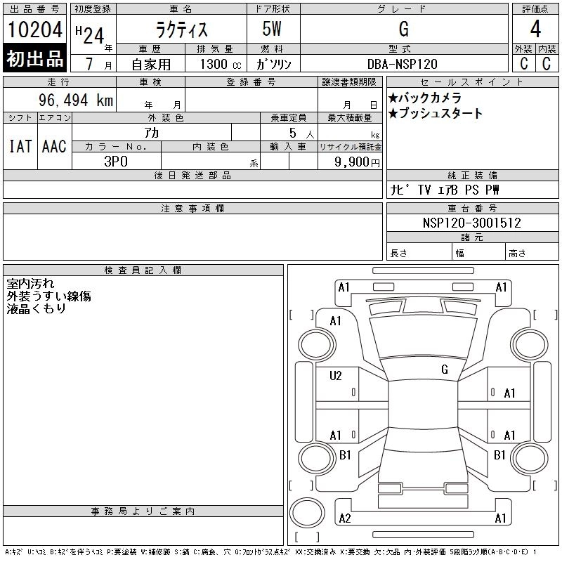 Год выпуска2012 Пробег 96 000 км КузовNSP120 КомплектацияG