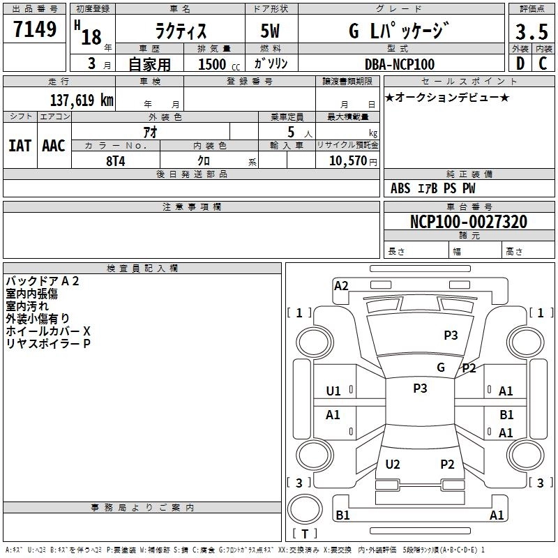 Год выпуска2006 Пробег 138 000 км КузовNCP100 КомплектацияG L PACKAGE