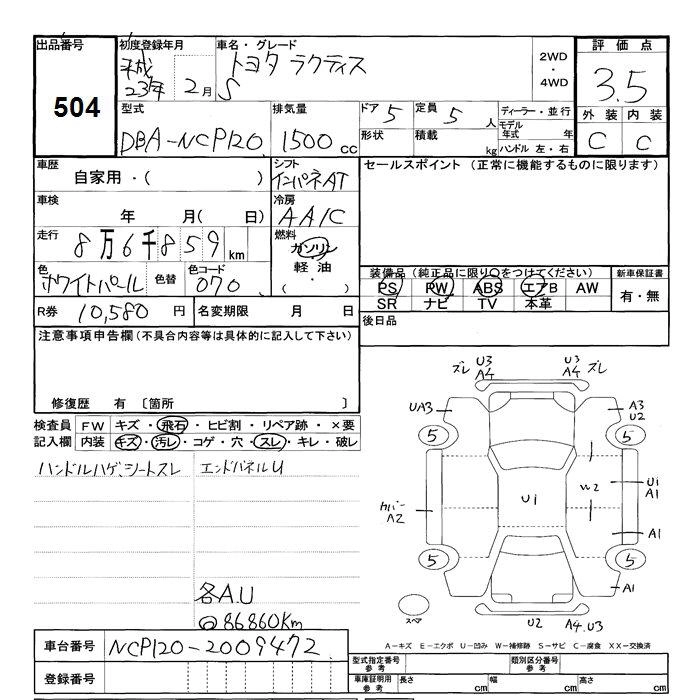Статус выставлен на аукцион Лот 504 Аукцион JU Shizuoka Дата аукциона 27.01.2026