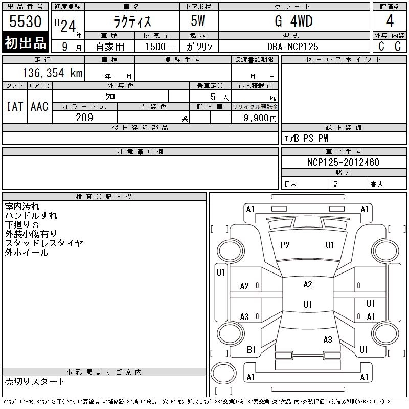 Год выпуска2012 Пробег 136 000 км КузовNCP125 КомплектацияG 4WD